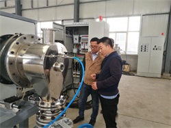 在設備旁邊張經理針對客戶物料和設備的配合做了分析,然后做了測試。